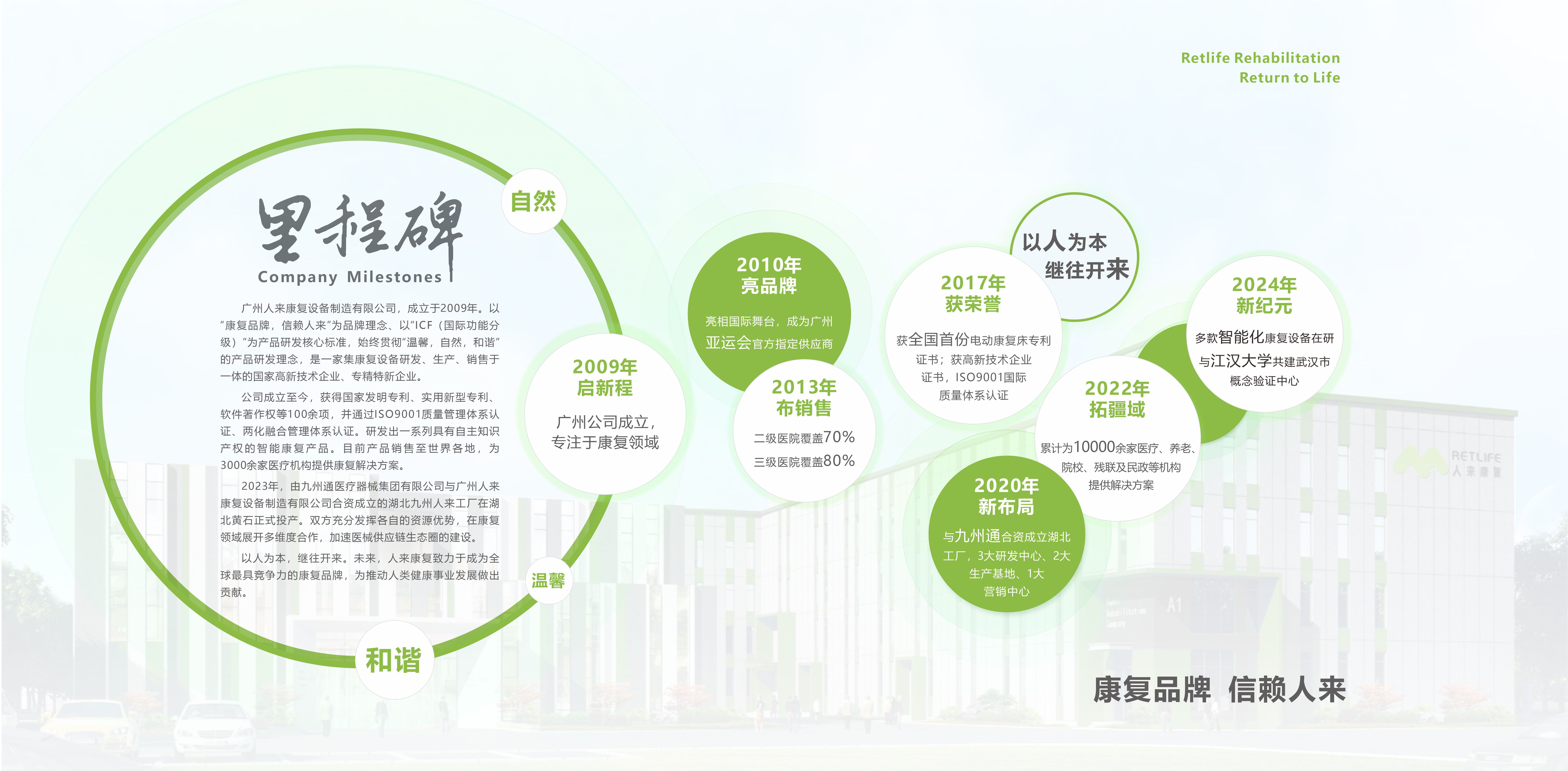 广州人来康复设备制造有限公司,成立于2009年。以“康复品牌,信赖人来”为品牌理念、以“ICF(国际功能分级)”为产品研发核心标准,始终贯彻“温馨,自然,和谐”的产品研发理念,是一家集康复设备研发、生产、销售于一体的高新技术企业、专精特新企业。