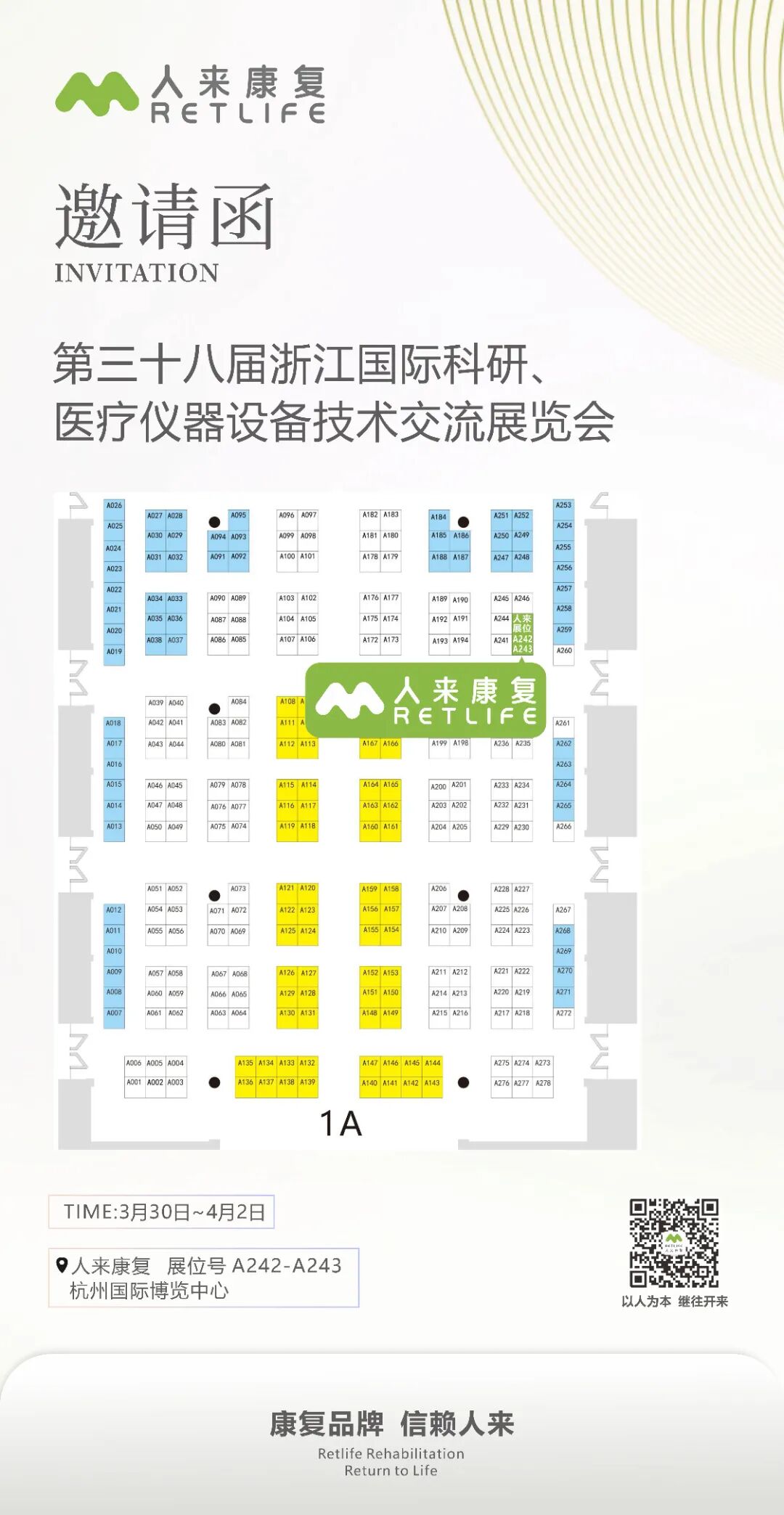 The 38th Zhejiang International Exhibition of Scientific Research, Medical Instrumentation and Equipment Technology will be held at the Hangzhou International Exhibition Center from March 30th to April 2nd, 2026. At that time, Ren'gui Rehabilitation will showcase its complete range of products. The exhibition booth is A242-A243. We sincerely invite all medical institutions and distributors to come and visit and exchange ideas.