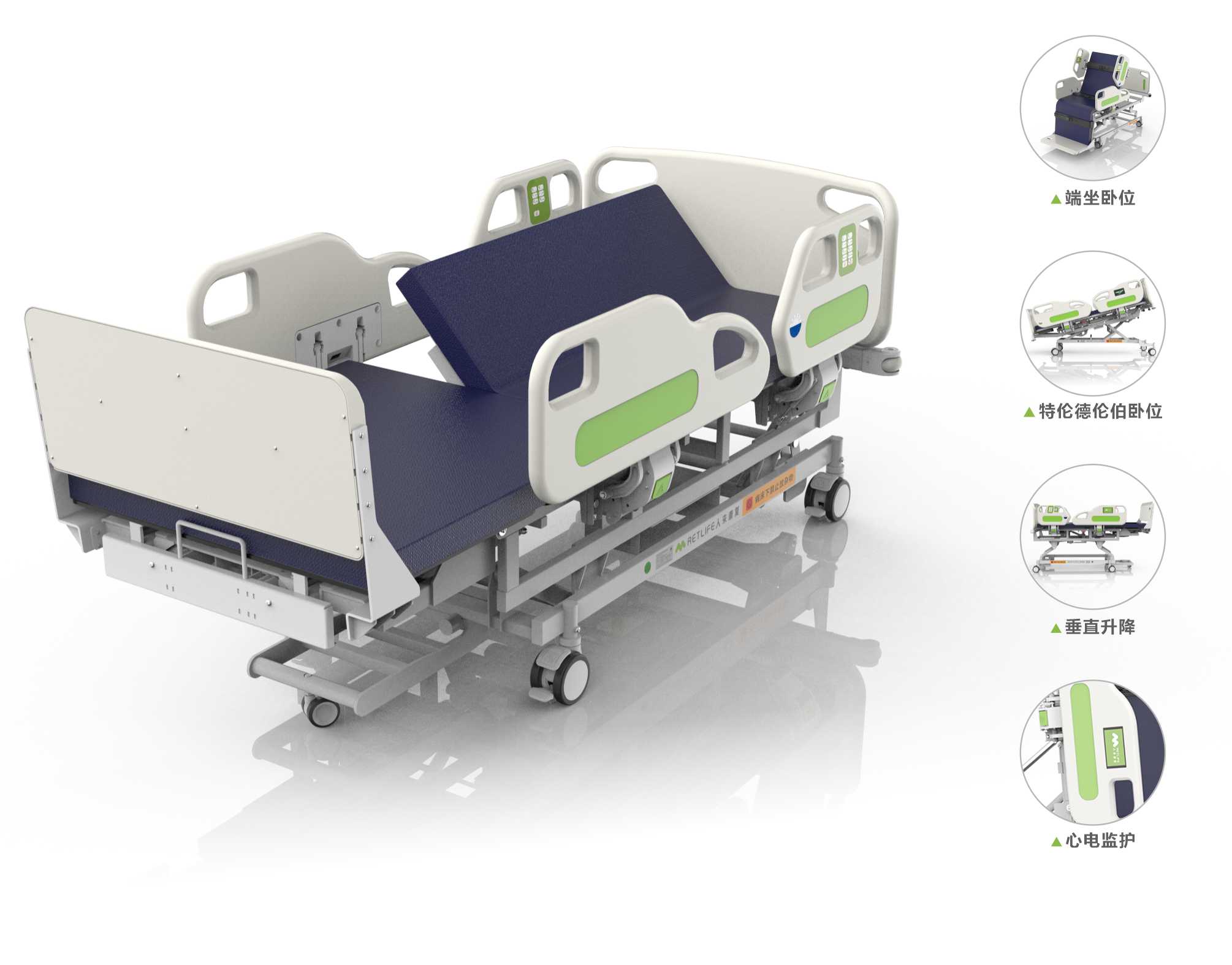 A multifunctional electric medical bed integrating supine position, CPR position, sitting-up position, and ECG monitoring
