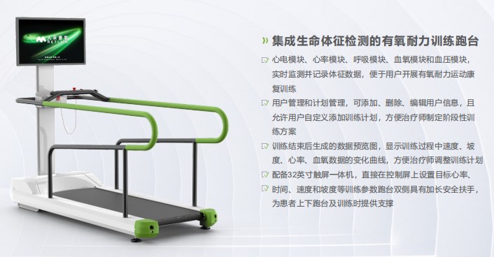 The rehabilitation treadmill training system is designed for conducting cardiorespiratory endurance training, walking rehabilitation training, warm-up and cool-down exercises before and after training on the exercise platform. This system can collect users' physiological data, monitor and record the physiological data of users during each training period, and through data processing, determine the trend of users' training effect changes, thereby assisting users in conducting more effective exercise rehabilitation training.