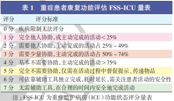 ① ICU 功能状态评分量表(functional status score for ICU,FSS-ICU)