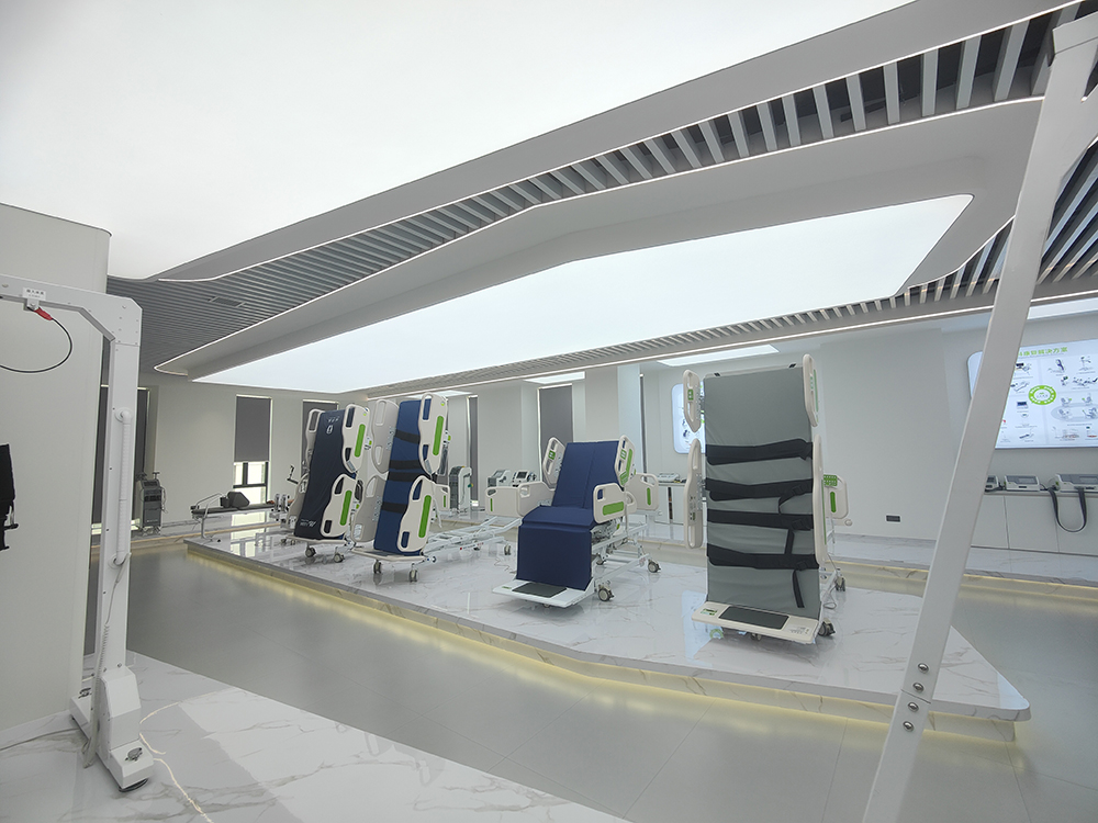 两大产品孵化中心的落成,为公司创新产品的研发和转化提供了专门的展示平台,其内部分设五大成果展示区域,涵盖从康复承载、运动康复、物理因子、一般任务到功能评定的康复全场景研发成果展示。
