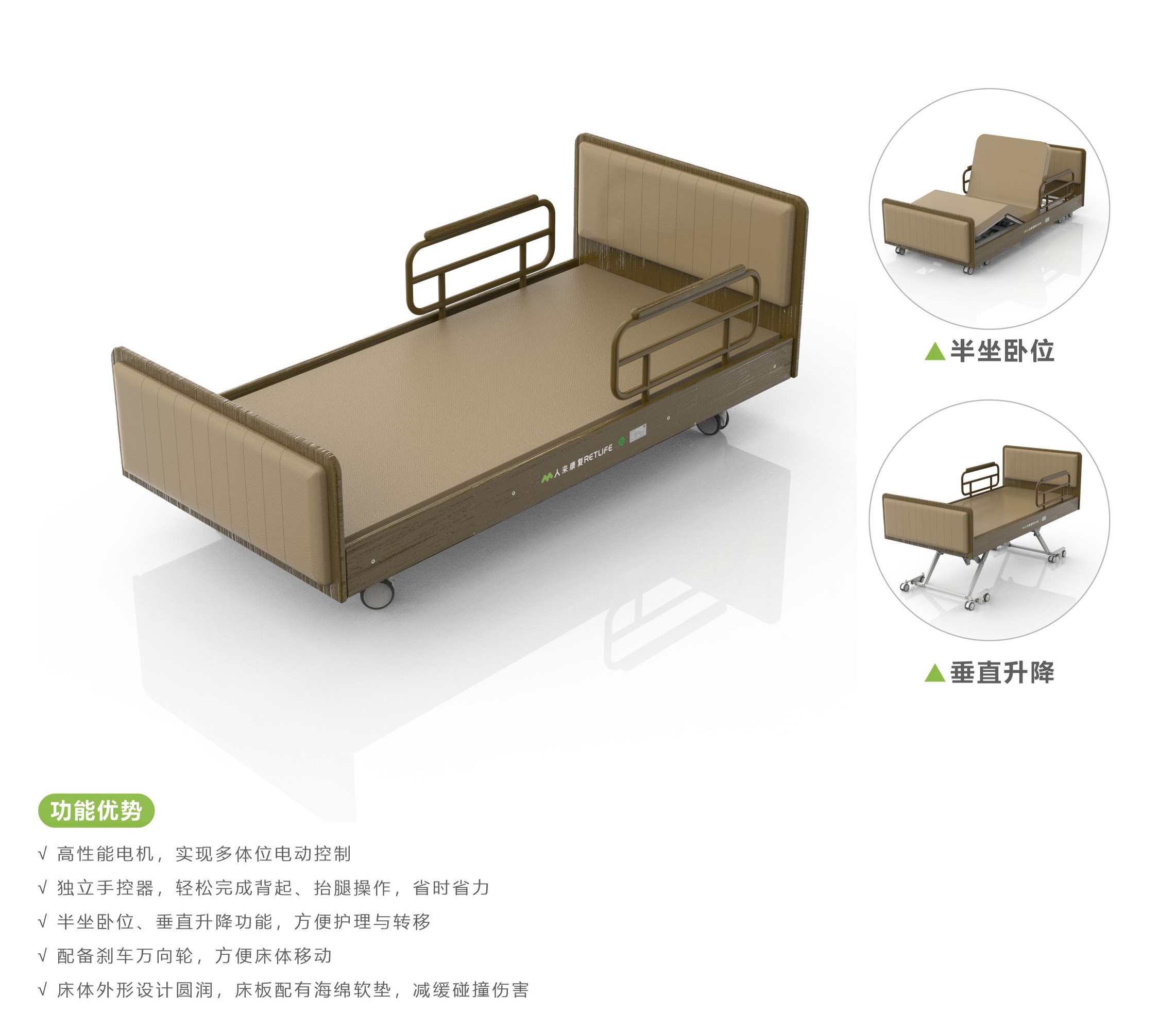 电动护理床是一款集多种功能于一体的家居康养护理设备,采用手控器一键操作,驱动电机可随意调节床架,适配人体各个部位的弯曲角度,可自由调节身体姿势,减轻颈部压力,端坐、后躺或将脚部升起以促进血液循环等,这些都极大地满足了用户的日常生活需求。