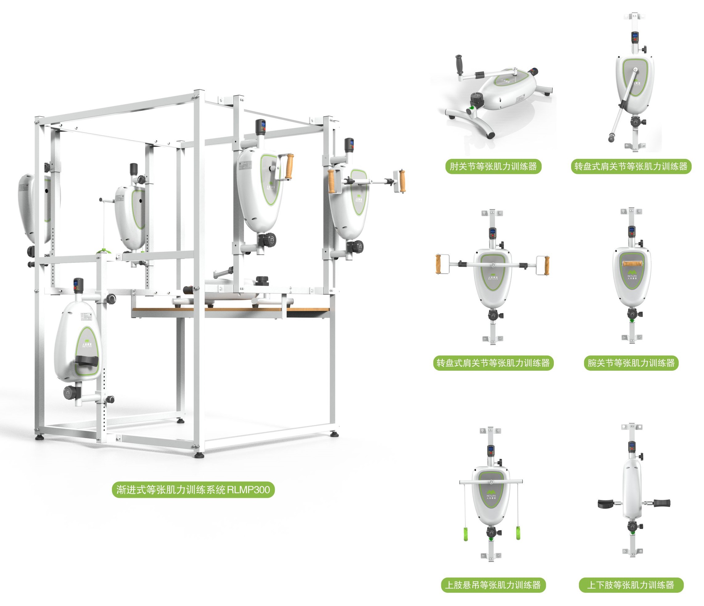 渐进式等张肌力训练器是一套由上、下肢各关节的多个训练组件组成的肌力训练系统,系统严格遵循等张及渐进式训练的原则,能够准确合理地增强相关肌群的肌力,全方位地增加上下肢关节活动度,有助于恢复患者上下肢的关节活动能力,改善本体感觉。