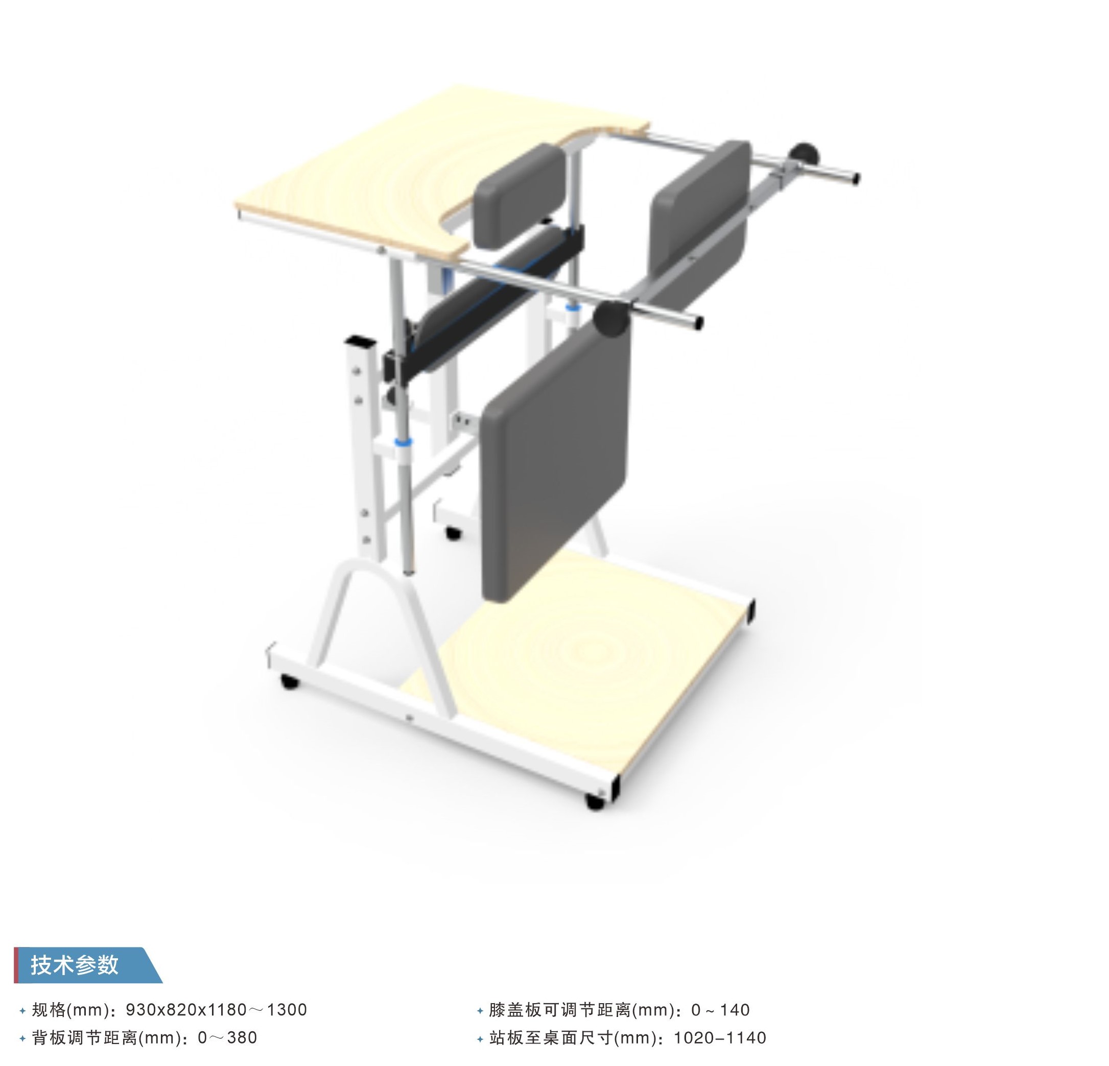 用途:用于截瘫、脑瘫站立功能障碍患者进行站立训练,适用于不同身高患者。