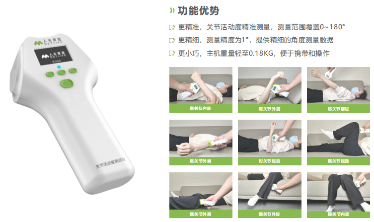 关节活动度测试仪是一款专为关节活动功能受损患者设计的测试设备。基于康复医学和运动医学理论,该仪器能够精确测量关节运动时的最大角度,即关节活动度(ROM)。通过获取关节活动度的准确数据,测试仪帮助治疗师评估患者的康复进展,制定个性化康复计划,并追踪治疗效果,对于诊断关节疾病、提高关节灵活性及肌肉骨骼功能至关重要。